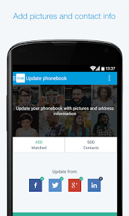 • Keeps your phonebook beautiful and up-to-date with photos and more from the Truecaller community, Twitter, Facebook, LinkedIn, Google+